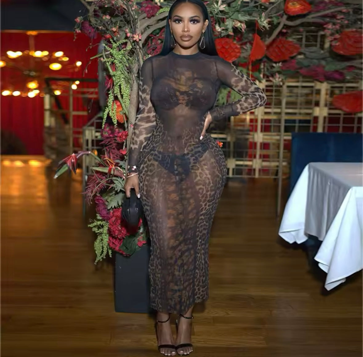 Leopard Print Mesh Dress